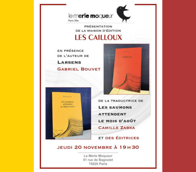 Entre grain de sable et montagne,le caillou est la parfaite mesure de la petite chose importante. commander nos livres et les recevoir chez vous je commande quoi de neuf ? Article / Presse, Les CaillouxOn parle de nouslire l'article LancementRetour en images sur la soirée du 14 novembrelire l'article LancementRetour en images sur la soirée du 20 novembrelire l'article je commande